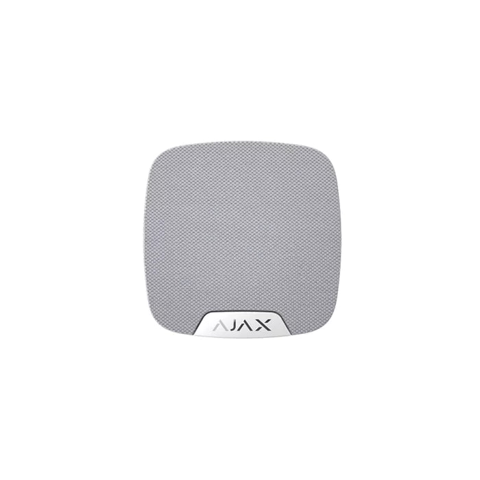 Ajax HomeSiren is an indoor siren that provides an audible alert when detectors trigger an alarm. Its sound level and duration can be adjusted to suit the location, while an LED indicates armed status. HomeSiren can also be used with an external LED for visual signaling.