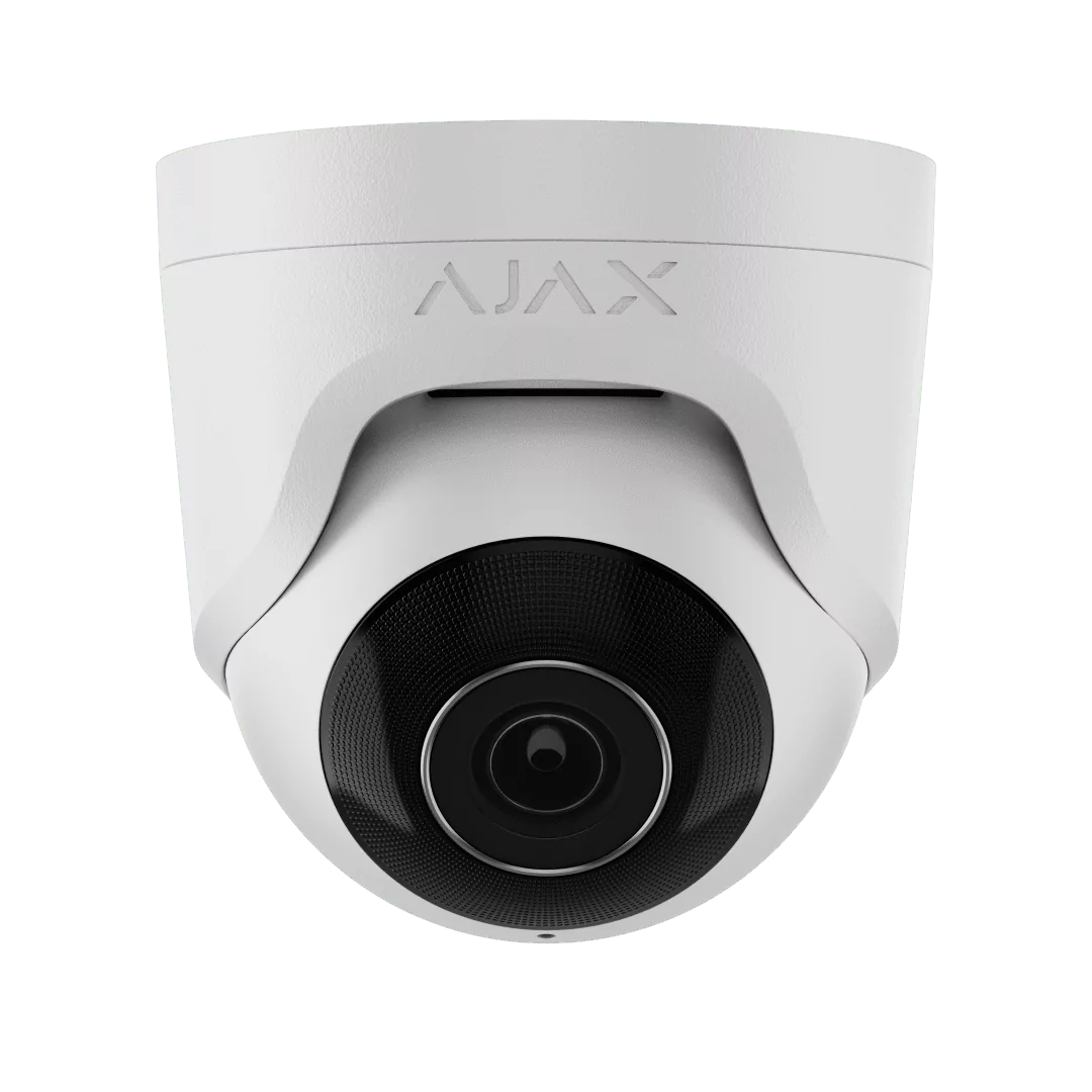 The Ajax TurretCam 5 MP 2.8 mm features a discreet dome‑shaped body with a ball‑and‑socket mount for flexible positioning. It provides high-definition wide-angle coverage and advanced image processing, making it ideal for indoor or sheltered outdoor areas. The camera combines durable construction with intelligent motion detection and remote management via the Ajax app.